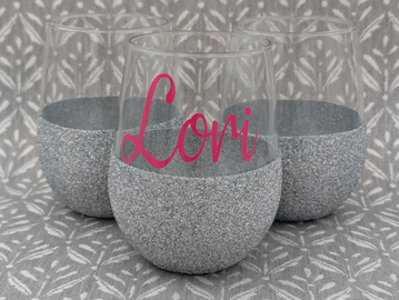 These are decorated with non-toxic extra fine glitter and sealed with a water-resistant sealer. This leaves the glitter texture but eliminates glitter shedding. They are handmade and may have slight imperfections around the edge of the glitter. Care Instructions: Do not microwave, scrub, soak in water. Hand washing is suggested. Personalization is available upon request.